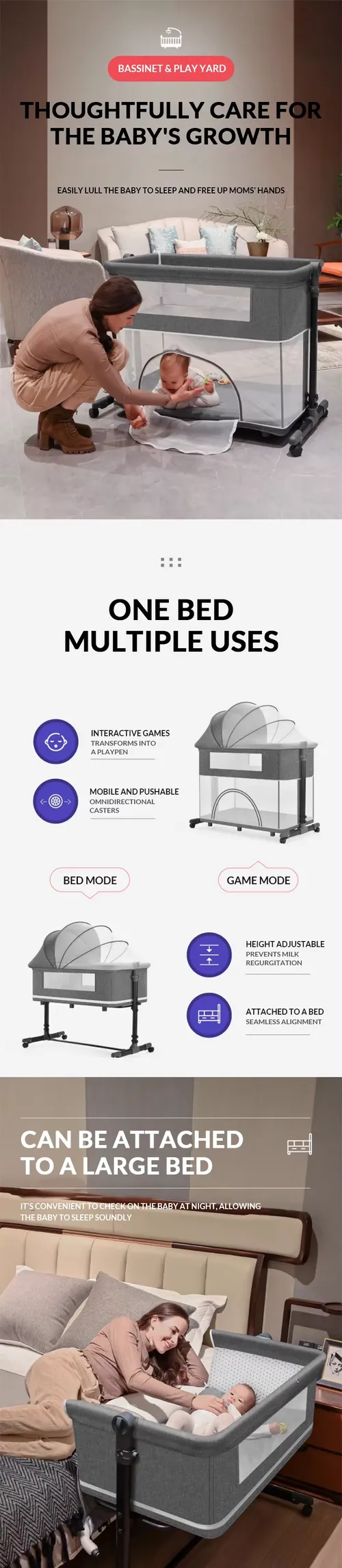 3 in 1 Baby Bed Play Pen Cradle with Adjustable Height 1 sales