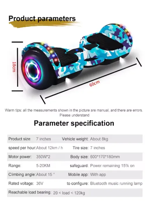 Bluetooth Enabled LED Hoverboard with Self Balance
